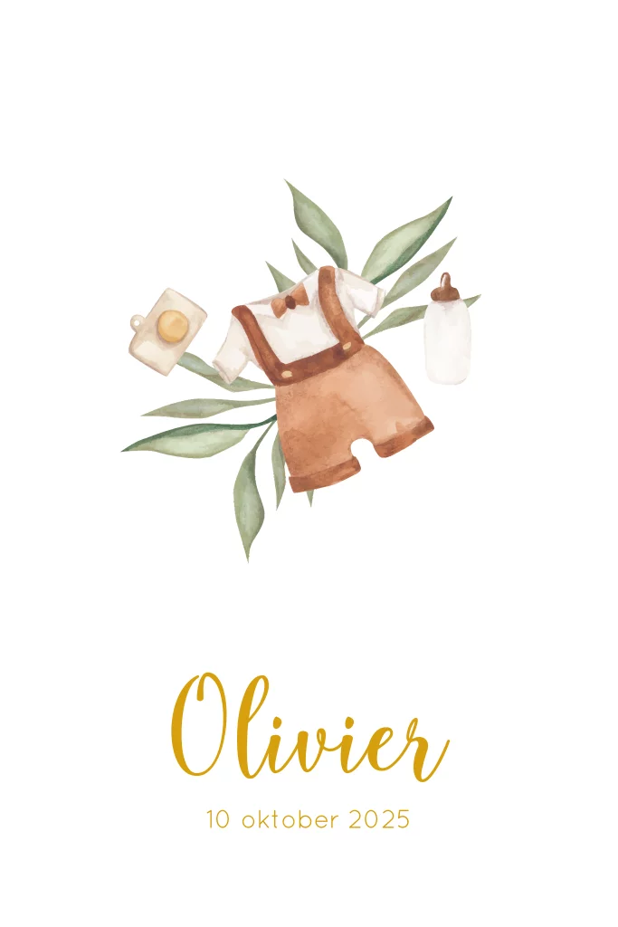 Hoera jullie zoon is geboren! Bestel dit hippe geboortekaartje met een getekend babypakje en ronde hoeken eenvoudig via onze site. Vinden jullie rechte hoeken mooier bij de kaart? Wijzig dit eenvoudig zelf via de editor. Minimale bestelhoeveelheid: 5 stuks.