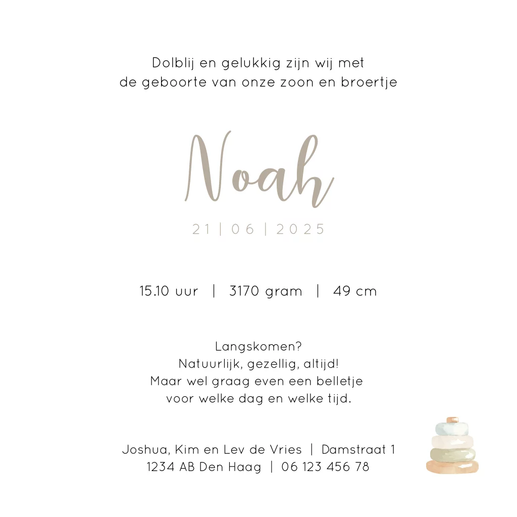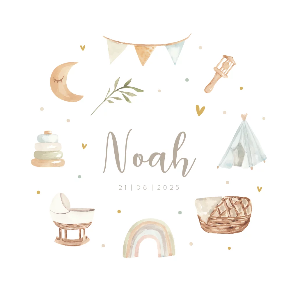 Schattig geboortekaartje met tekeningetjes voor een jongen.
