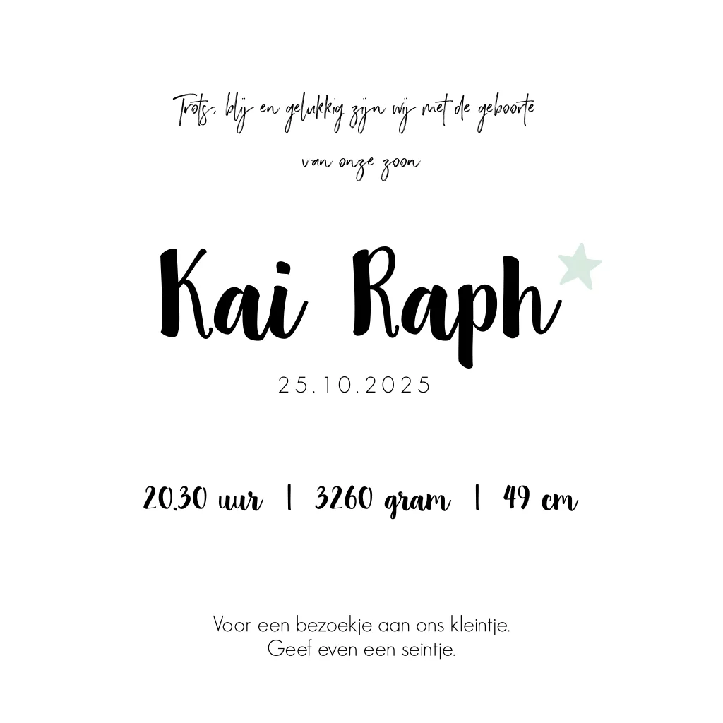 Geboortekaartje voor een jongen met mint kleurig diagonaal en stipjes