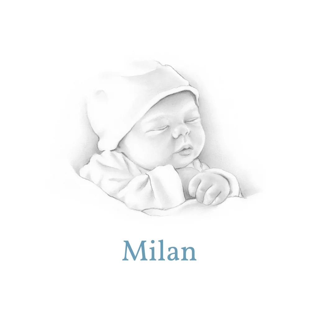 Lief geboortekaartje met zachte potloodtekening. De blauwe kleur van de tekst is eenvoudig aan te passen in de editor.