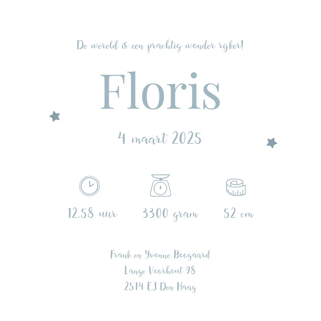 Lief geboortekaartje met uiltje voor een jongen.