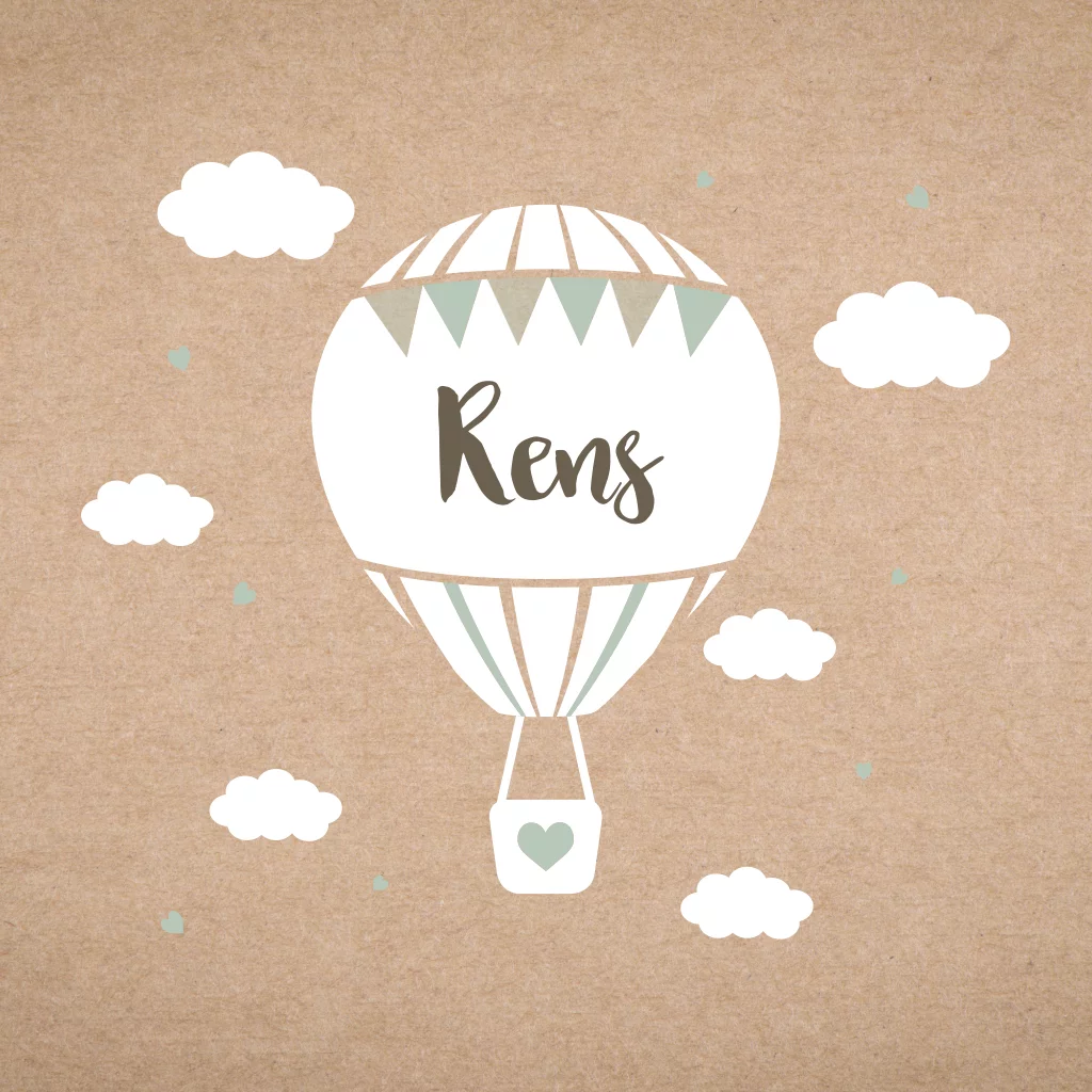 Schattig geboortekaartje met luchtballon voor een jongen.