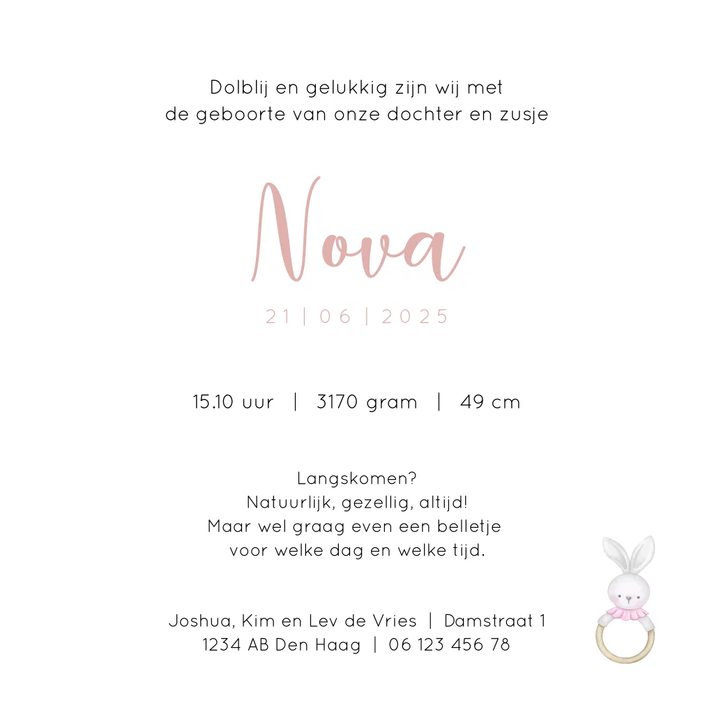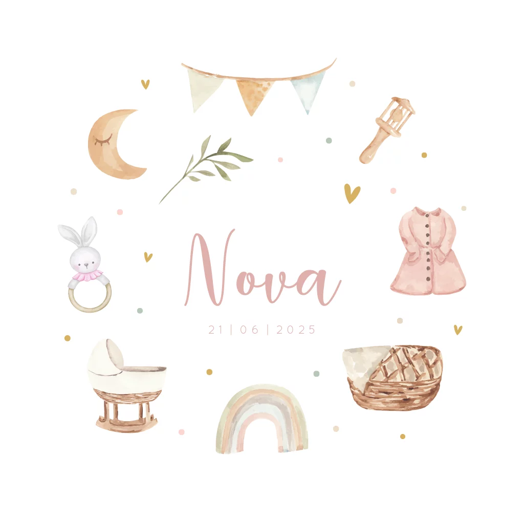 Schattig geboortekaartje voor een meisje met tekeningetjes.