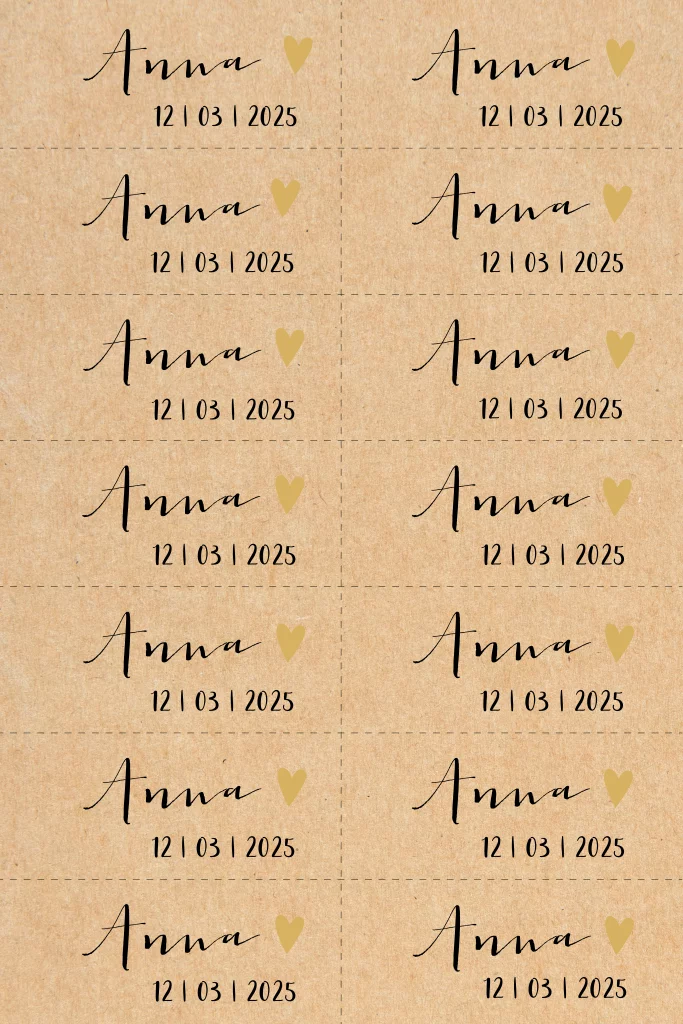 DIY label met kraft opdruk en indruk naar keuze. Bestel deze kaart op 14x21cm. De snijlijnen aan de voorkant worden niet afgedrukt. Op de achterkant wel. Gebruik deze snijlijnen om zelf de labels uit te knippen of te snijden. Het formaat van de labels is 7x3cm. Leuk om bijvoorbeeld aan je bedankje vast te maken voor je kraamvisite. Voor onze touwtjes kijk je op onze pagina extra's. Heb je hulp nodig? Wij helpen je graag!