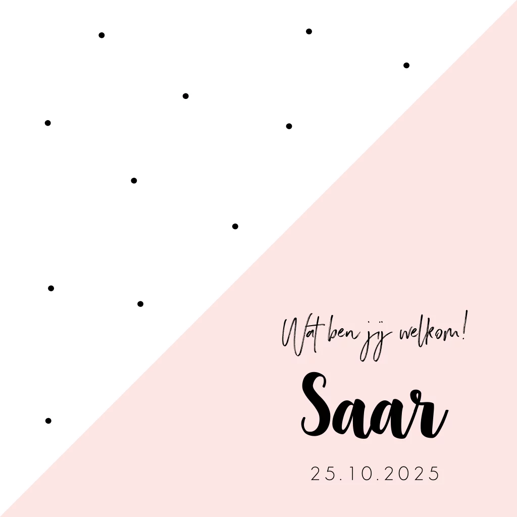 Geboortekaartje voor een meisje met roze diagonaal en stipjes