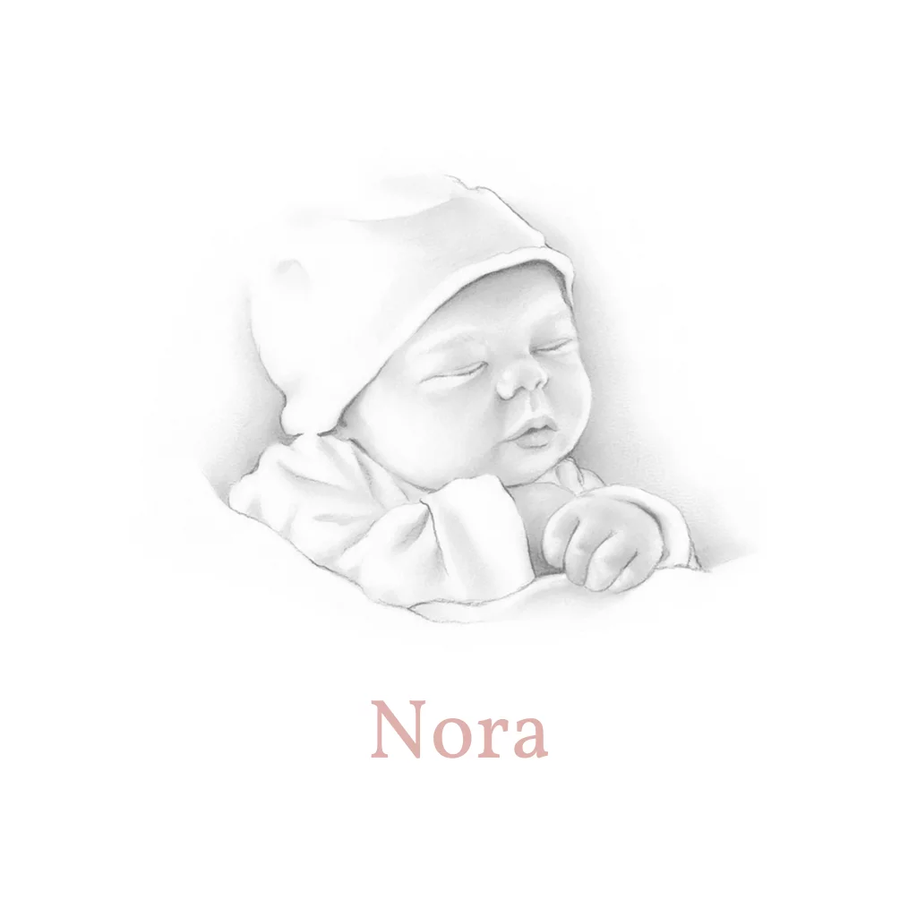 Lief geboortekaartje met zachte potloodtekening. De roze kleur van de tekst is eenvoudig aan te passen in de editor.