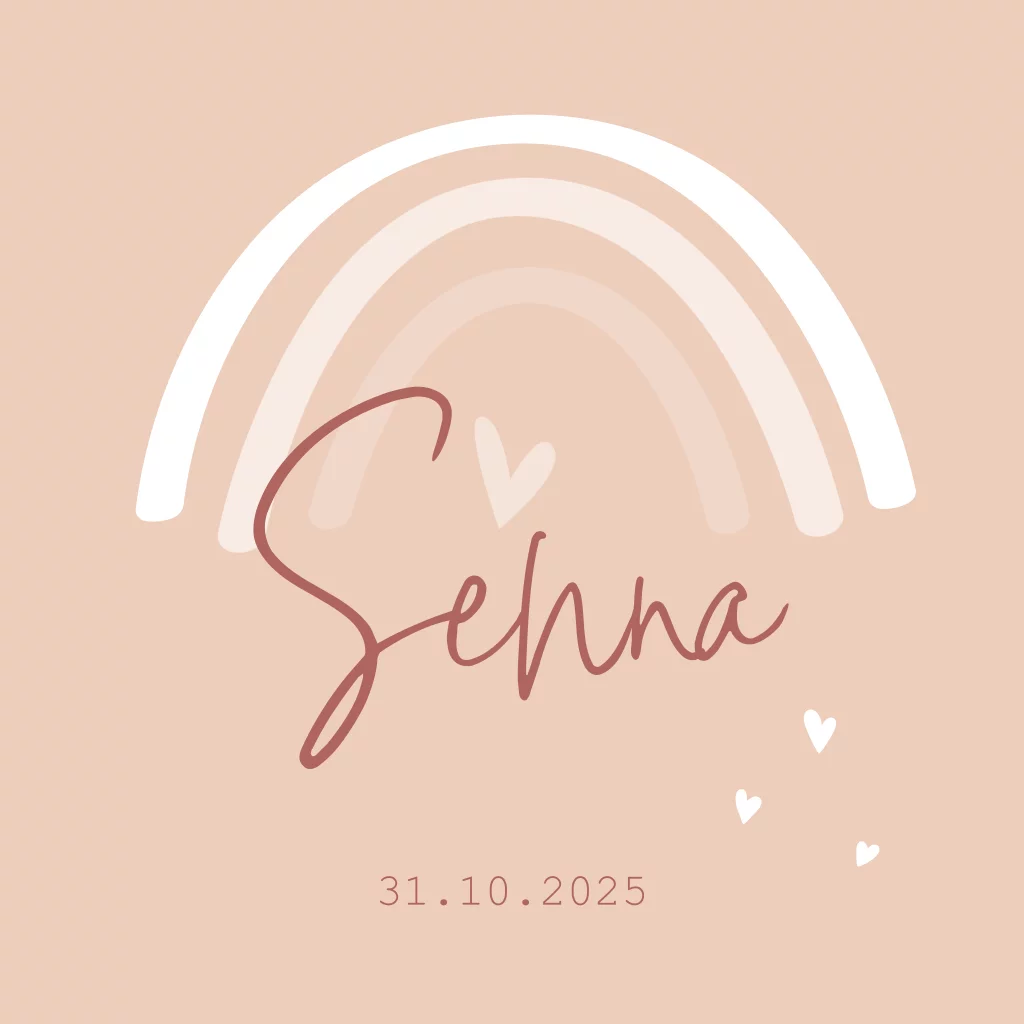 Stijlvol geboortekaartje meisje regenboog terra. Wil je dit kaartje liever in een andere kleur? Pas dit dan eenvoudig zelf toe in de editor! Kom je er toch even niet uit? Neem dan contact met ons op! We helpen je graag verder.
