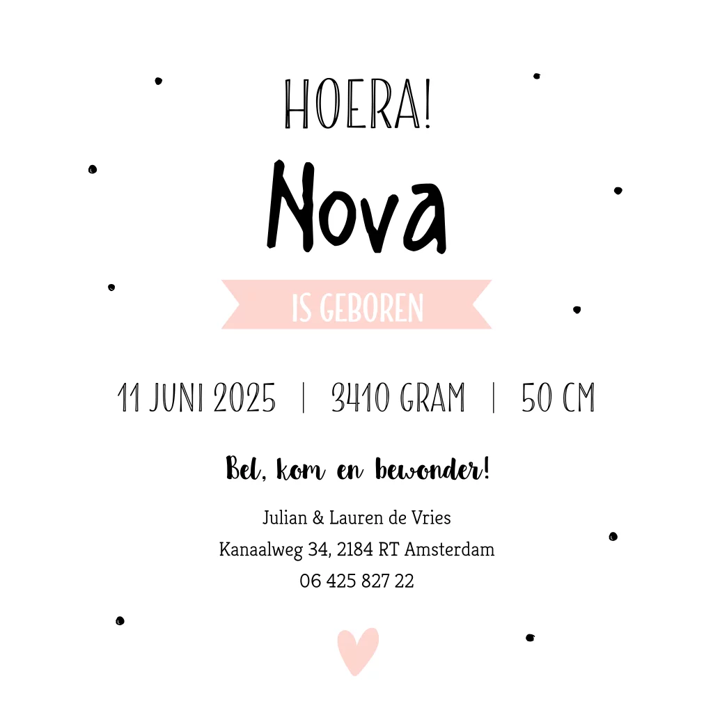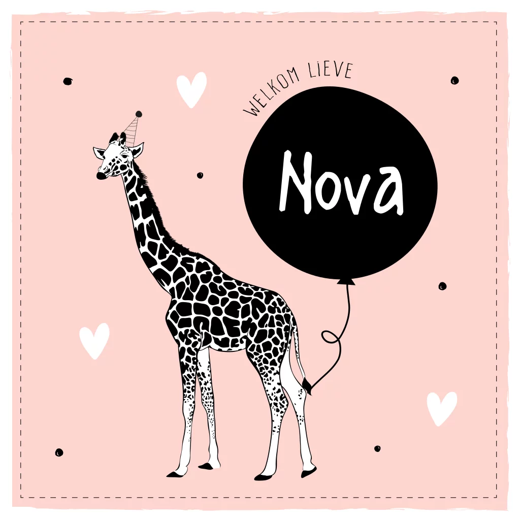Stoer roze geboortekaartje voor een meisje met safari/jungle dieren. De kleuren van dit kaartje zijn ook gemakkelijk aan te passen en zo creëer je weer een heel ander geboortekaartje. Ook in jongensversie verkrijgbaar!