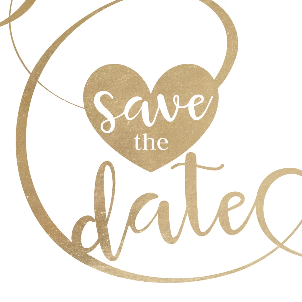 Save the date kaart met hart in goudtint. Deze kaart is mooi te combineren met een passende trouwkaart.