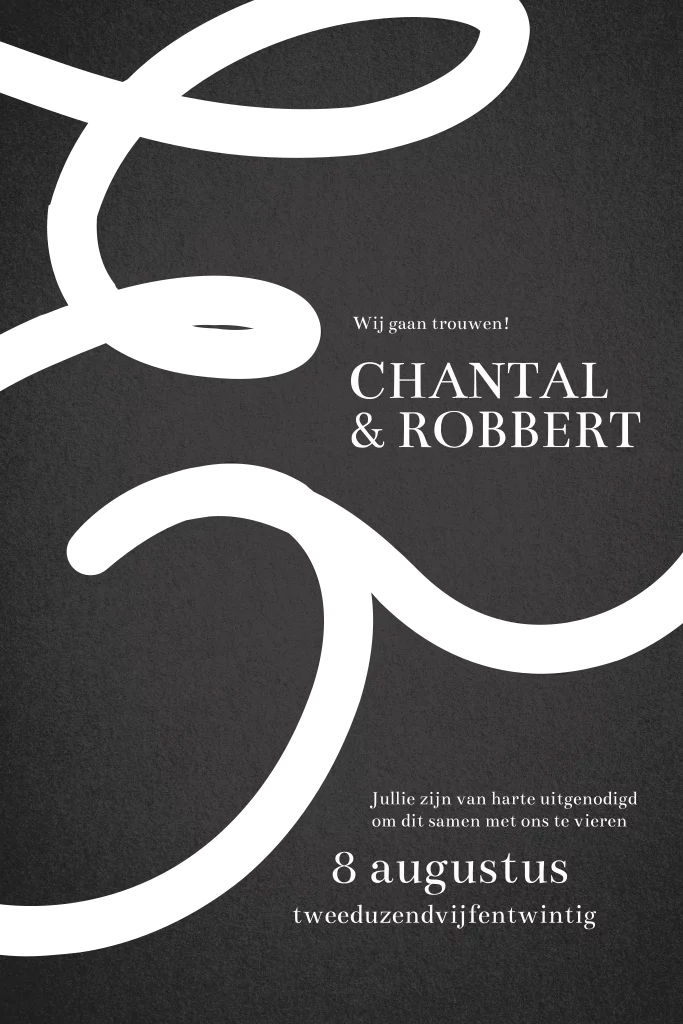 Staande klassieke trouwkaart met folie. Liever toch zilver- of goudfolie? Je kunt dit gemakkelijk zelf aanpassen door op de naam te klikken en bij kleur de folie te kiezen die je wilt. Let op: Deze kaart heeft een langere verzendtijd: voor 18.00 uur besteld = de volgende werkdag gedrukt en verzonden. Minimale bestelhoeveelheid: 20 stuks.