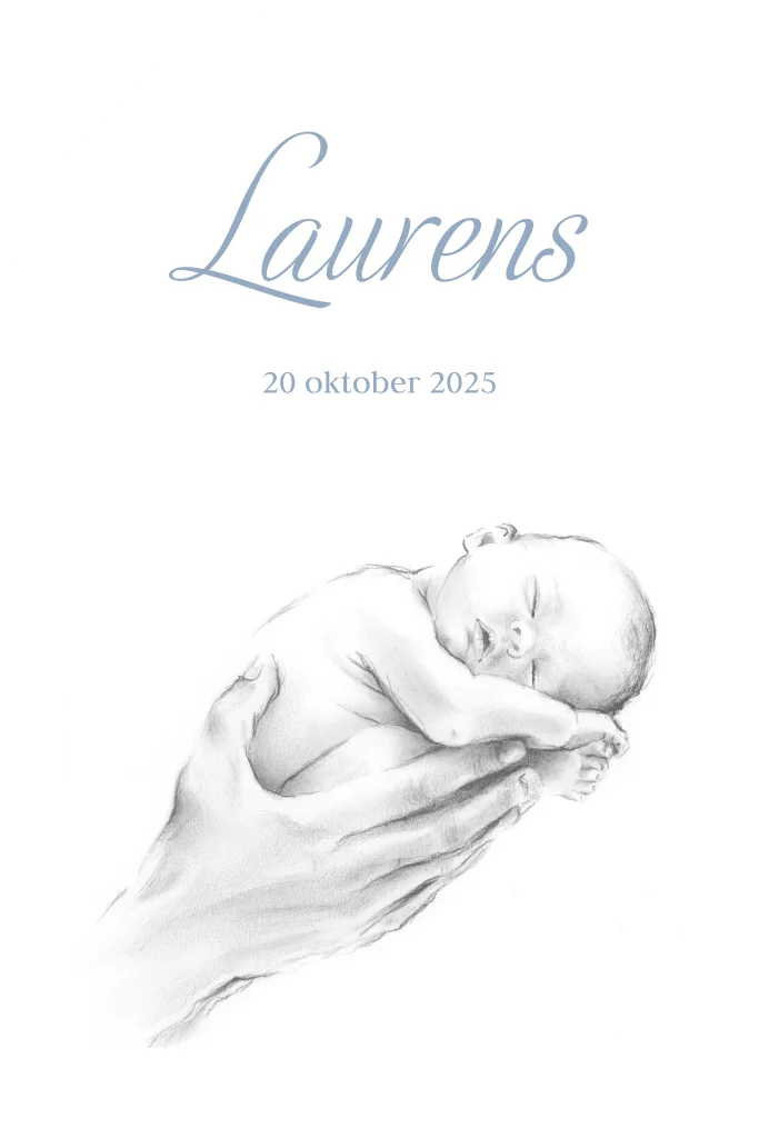 Geboortekaartje in boogvorm en tekening voor een jongen