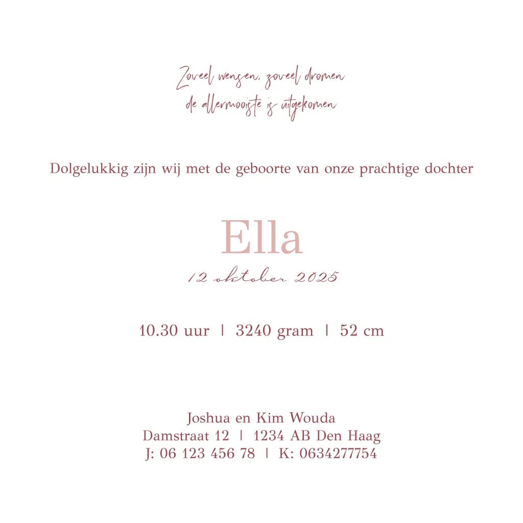 Geboortekaartje met gestanst wolkje voor een meisje.
