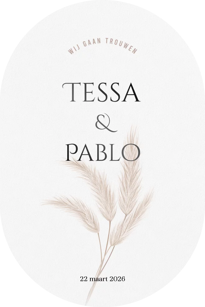 Trendy trouwkaart met bijzondere vorm. Deze trouwkaart met originele vorm is écht even wat anders. De namen op deze kaart staan in zwarte folie. Dit geeft een luxe uitstraling. Je verandert de kleur eenvoudig in onze editor.