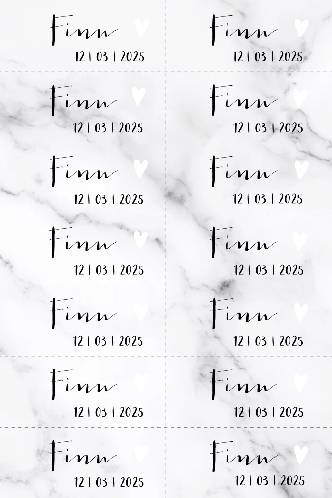 DIY label met marmer en goudfolie. Bestel deze kaart op 14x21cm. De snijlijnen aan de voorkant worden niet afgedrukt. Op de achterkant wel. Gebruik deze snijlijnen om zelf de labels uit te knippen of te snijden. Het formaat van de labels is 7x3cm. Leuk om bijvoorbeeld aan je bedankje vast te maken voor je kraamvisite. Voor onze touwtjes kijk je op onze pagina extra's. Heb je hulp nodig? Wij helpen je graag! Liever toch koper- of zilverfolie? Je kunt dit gemakkelijk zelf aanpassen door op de naam te klikken en bij kleur de folie te kiezen die je wilt. Let op: Deze kaart heeft een langere verzendtijd: voor 18.00 uur besteld = de volgende werkdag gedrukt en verzonden.
