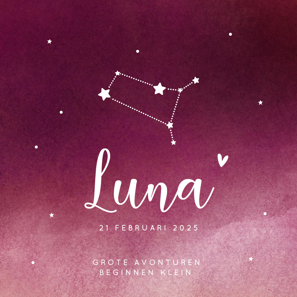 Hip geboortekaartje met sterrenbeeld en goudfolie