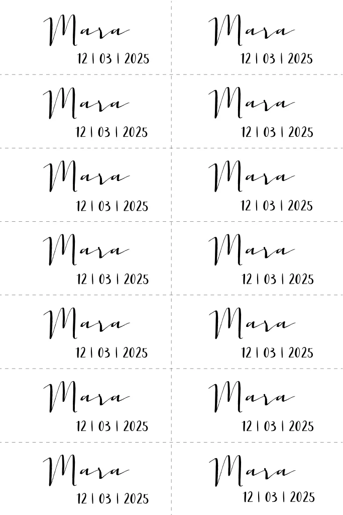 DIY label met goudfolie. Bestel deze kaart op 14x21cm. De snijlijnen aan de voorkant worden niet afgedrukt. Op de achterkant wel. Gebruik deze snijlijnen om zelf de labels uit te knippen of te snijden. Het formaat van de labels is 7x3cm. Leuk om bijvoorbeeld aan je bedankje vast te maken voor je kraamvisite. Voor onze touwtjes kijk je op onze pagina extra's. Heb je hulp nodig? Wij helpen je graag!