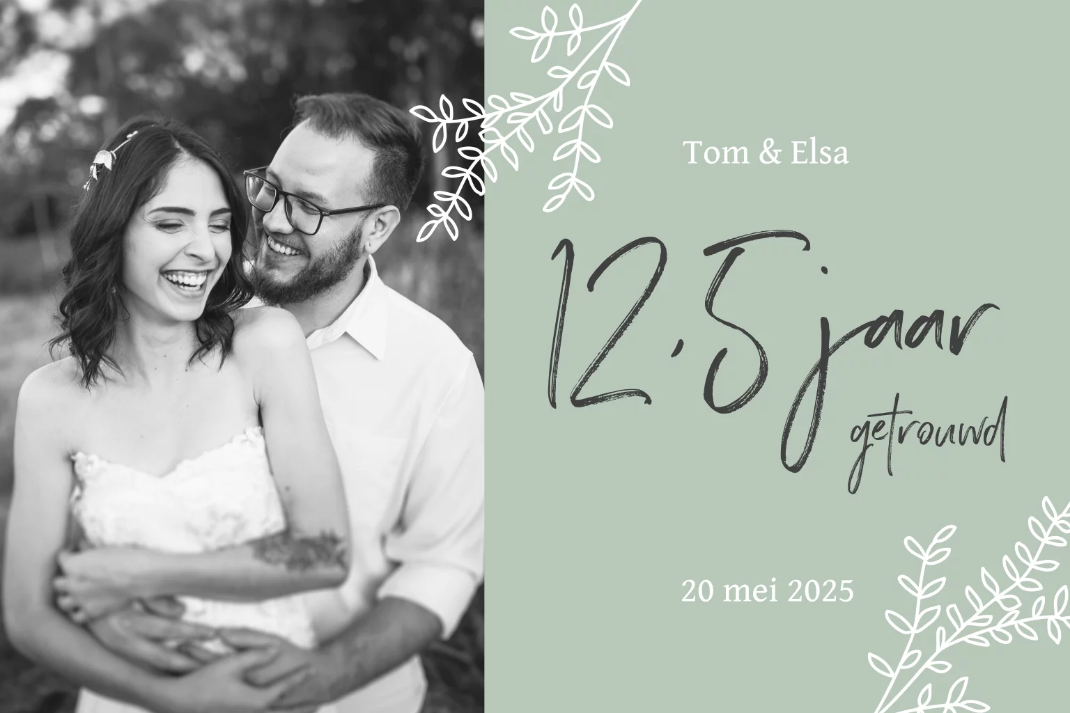 Enkele jubileumkaart voor 12,5 jaar met eigen foto. De kleur van de kaart is eenvoudig aan te passen naar eigen smaak.