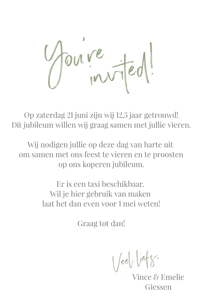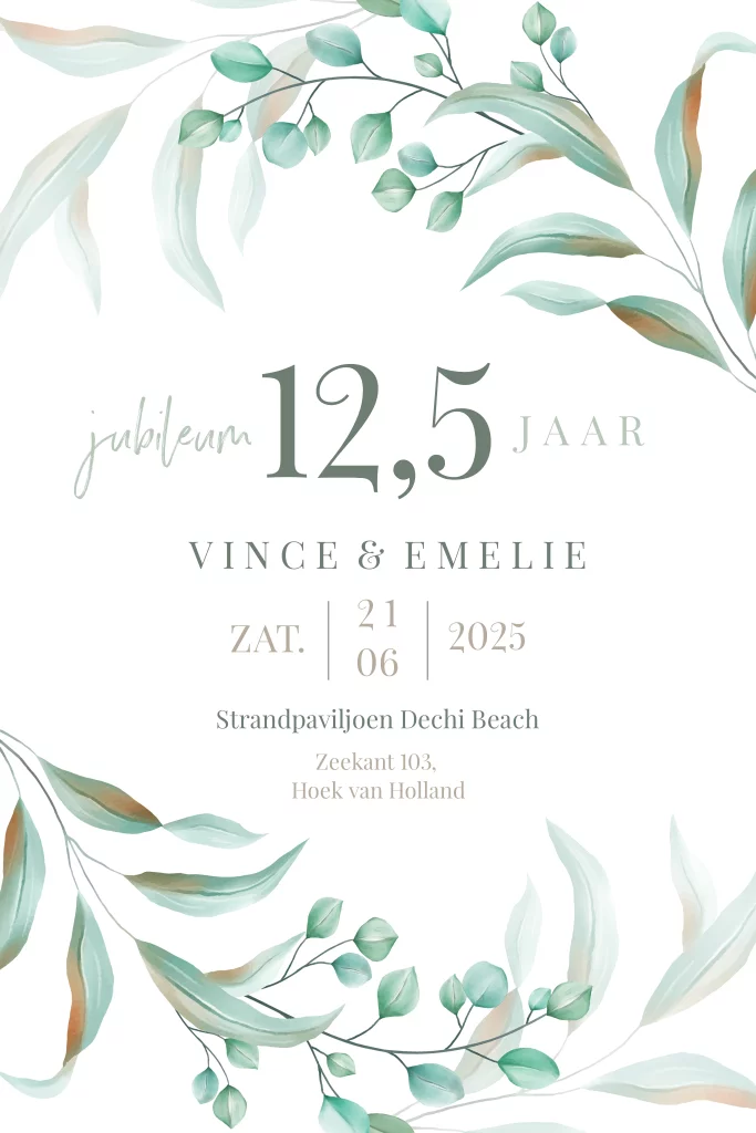Jubileumkaart uitnodiging botanisch 12,5 jaar getrouwd