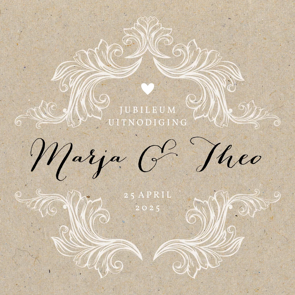 Jubileumkaart met wit ornament op kraft voor 40 jaar