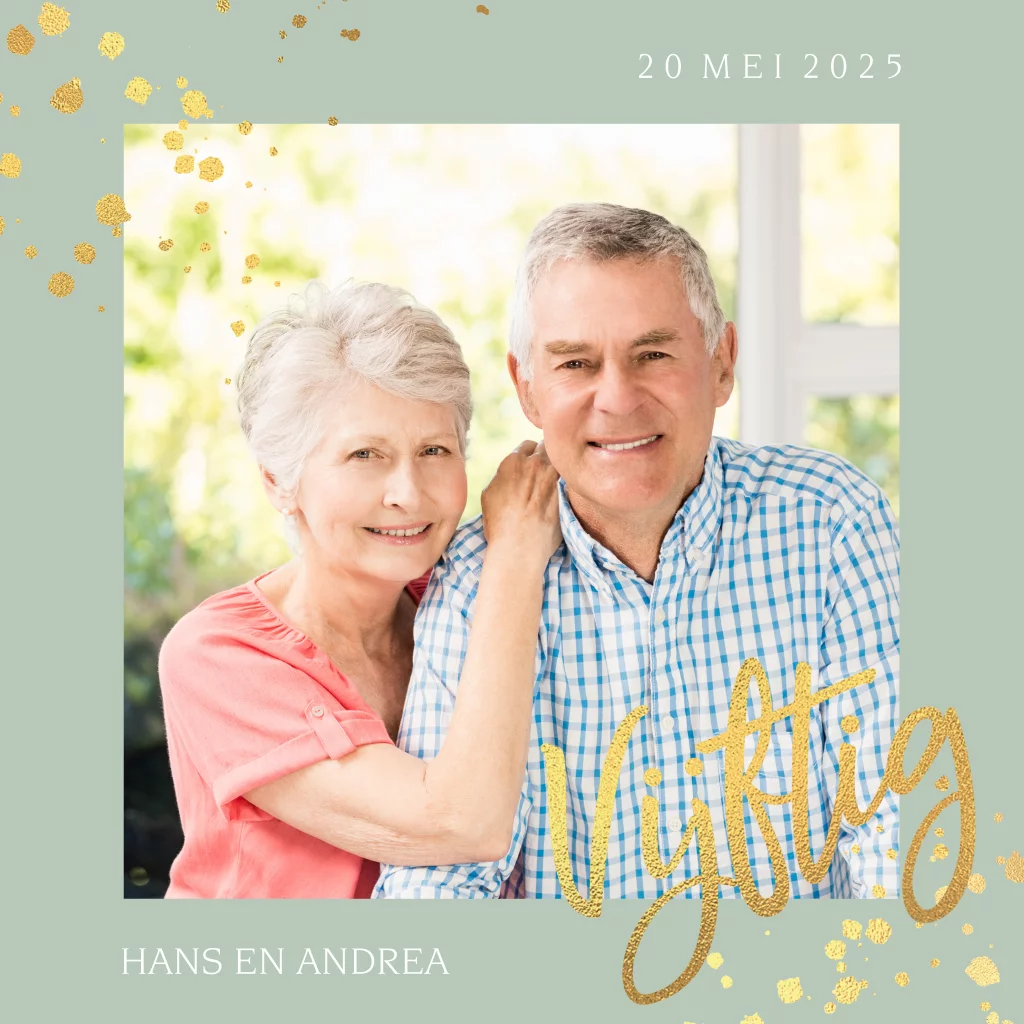 Jubileumkaart uitnodiging mint groen 50 jaar getrouwd met eigen foto en goudfolie look.