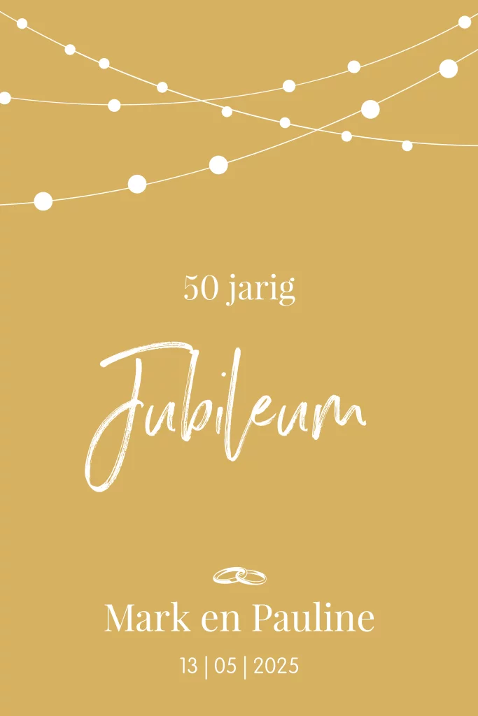 Jubileumkaart met slinger en ringen voor 50 jaar