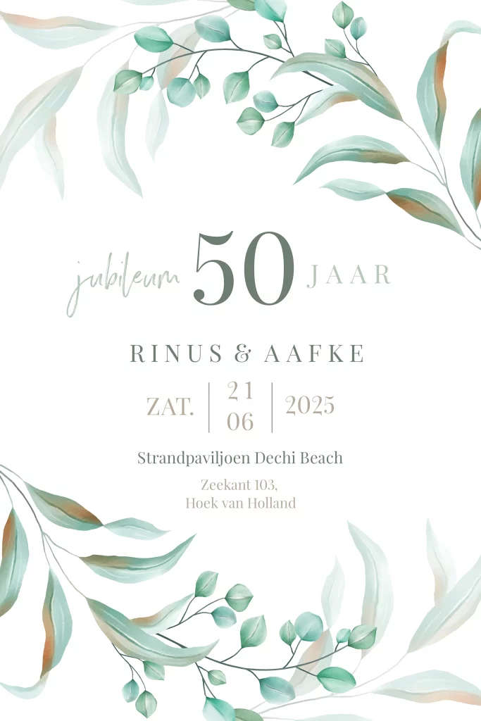 Jubileumkaart uitnodiging botanisch 50 jaar getrouwd