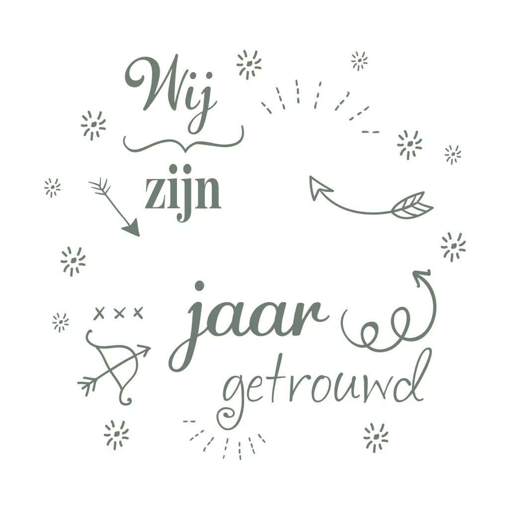 Vrolijke jubileumkaart met zilverfolie voor 25 jaar. Liever een andere kleur folie? Je kunt dit zelf aanpassen.
