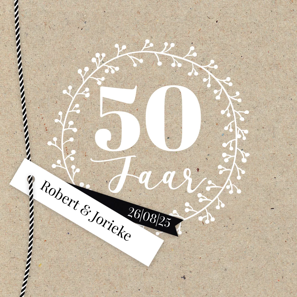 Jubileumkaart met labels en goudfolie voor 50 jaar