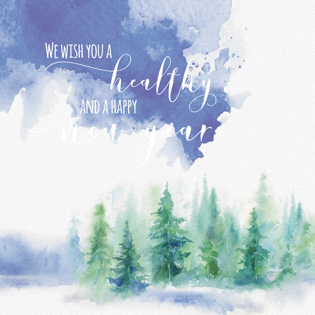 Healthy and happy new year vierkante kerstkaart met internationale teksten