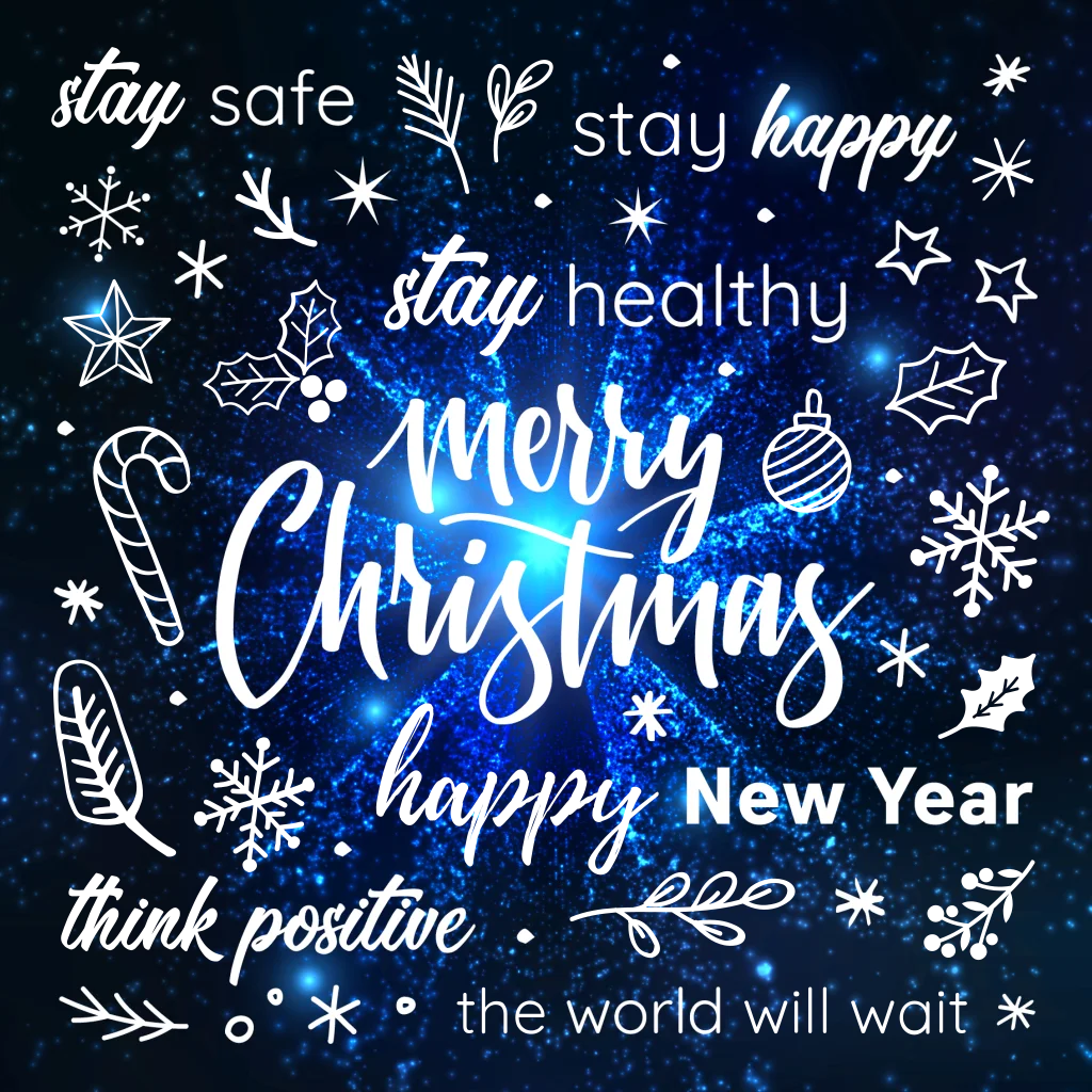 Donkerblauwe kerstkaart met goudfolie elementen
