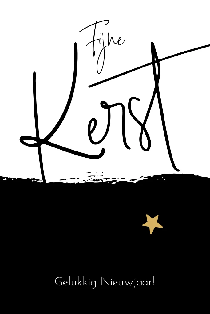 Enkelzijdige kerstkaart in zwart, wit en goudkleur