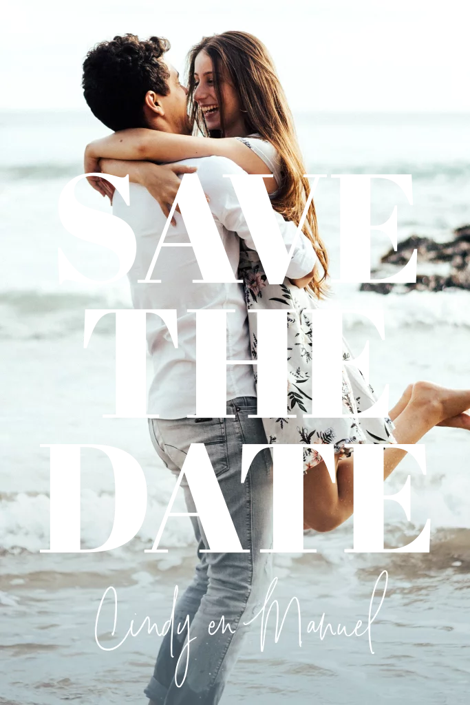 Save the date fotokaart met goudfolie typografie. Let op: Deze kaart heeft een langere verzendtijd: voor 18.00 uur besteld = de volgende werkdag gedrukt en verzonden. Minimale bestelhoeveelheid: 20 stuks.