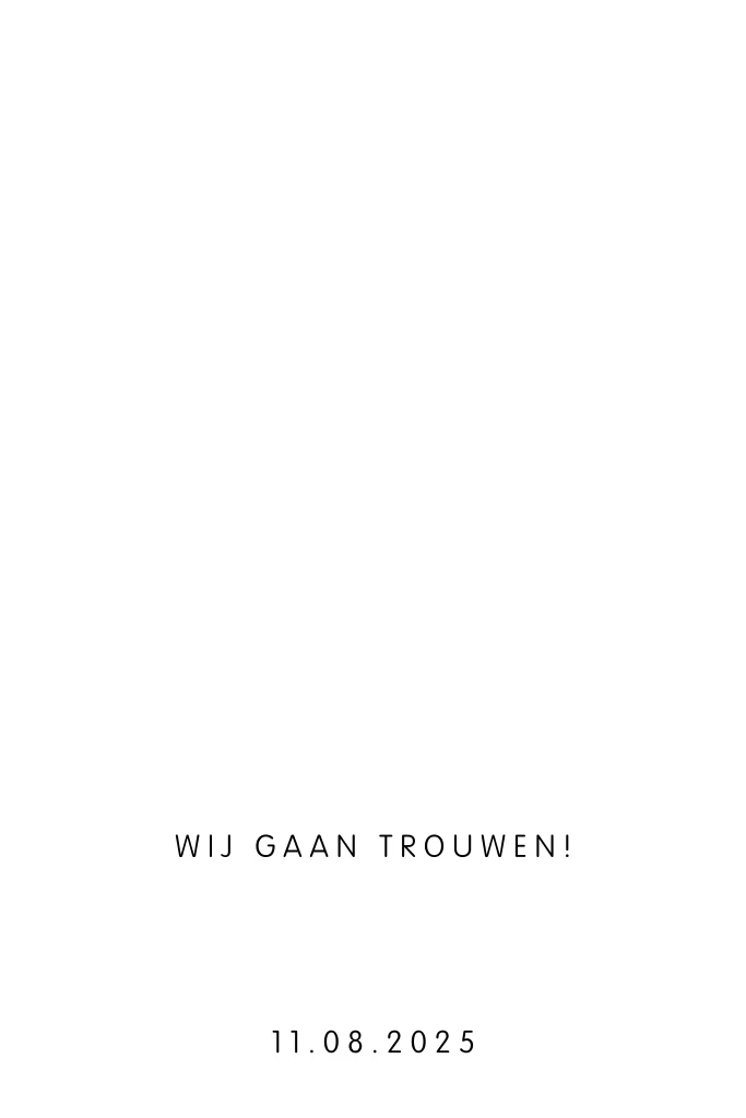 Trendy save the date kaart met de tekst in goudfolie. Let op: Deze kaart heeft een langere verzendtijd: voor 18.00 uur besteld = de volgende werkdag gedrukt en verzonden. Minimale bestelhoeveelheid: 5 stuks.