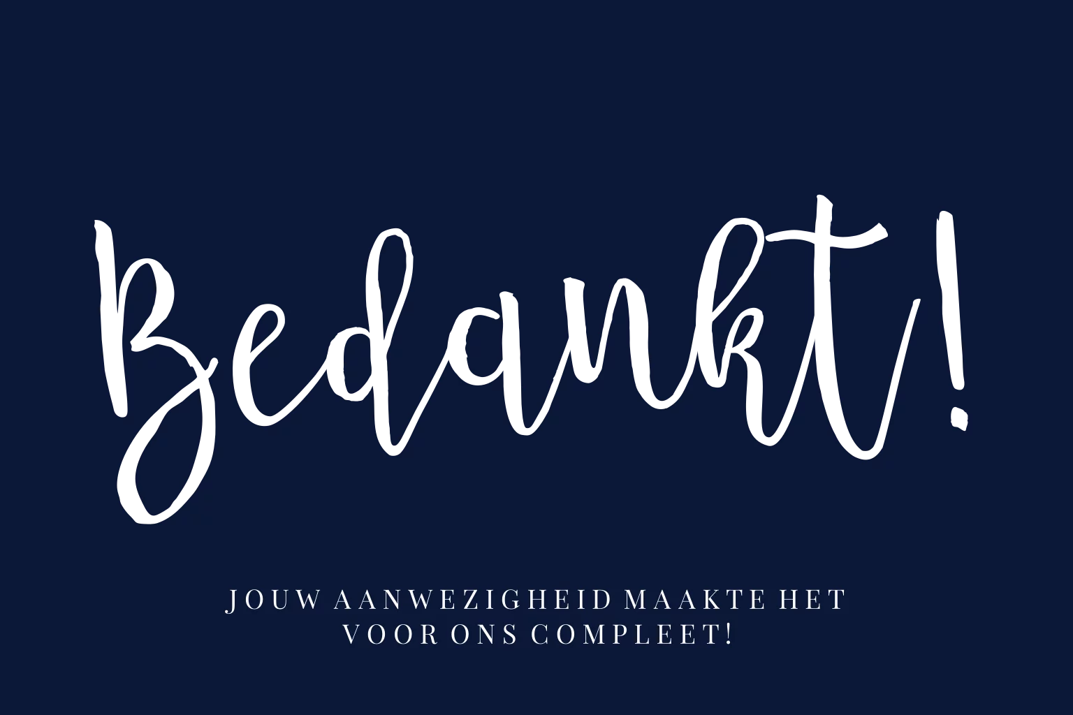 Trendy dankkaart met folie. Let op: Deze kaart heeft een langere verzendtijd: voor 18.00 uur besteld = de volgende werkdag gedrukt en verzonden. Minimale bestelhoeveelheid: 5 stuks.