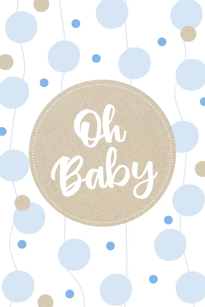Uitnodiging babyshower met blauwe slingers en kraft look
