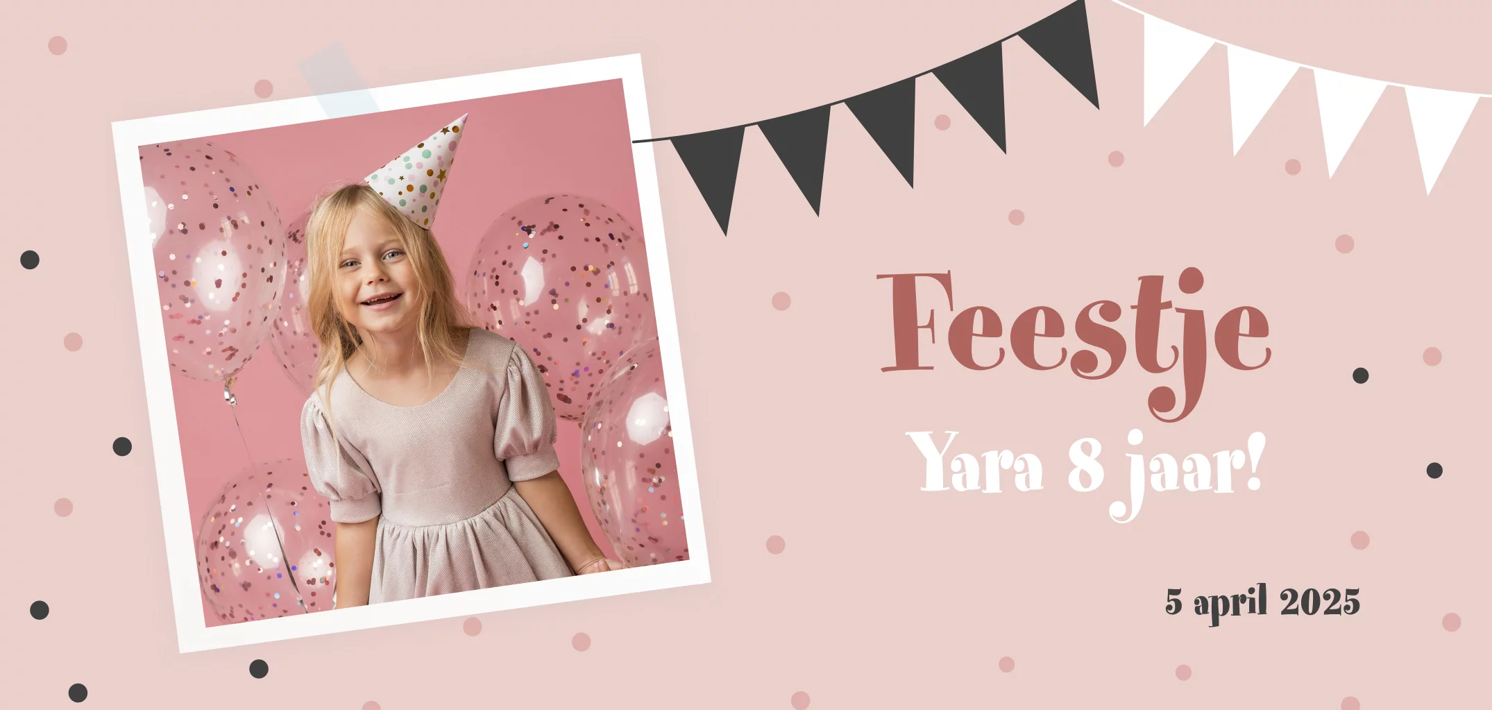 Enkele uitnodiging voor verjaardag met eigen foto voor een meisje.