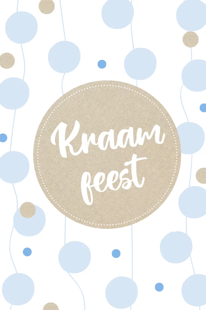 Uitnodiging kraamfeest met blauw stippen en kraft look voor een jongen