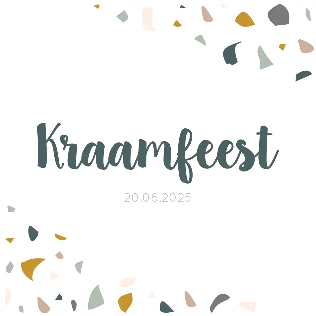 Uitnodiging kraamfeest voor een jongen met terrazzo steentjes print