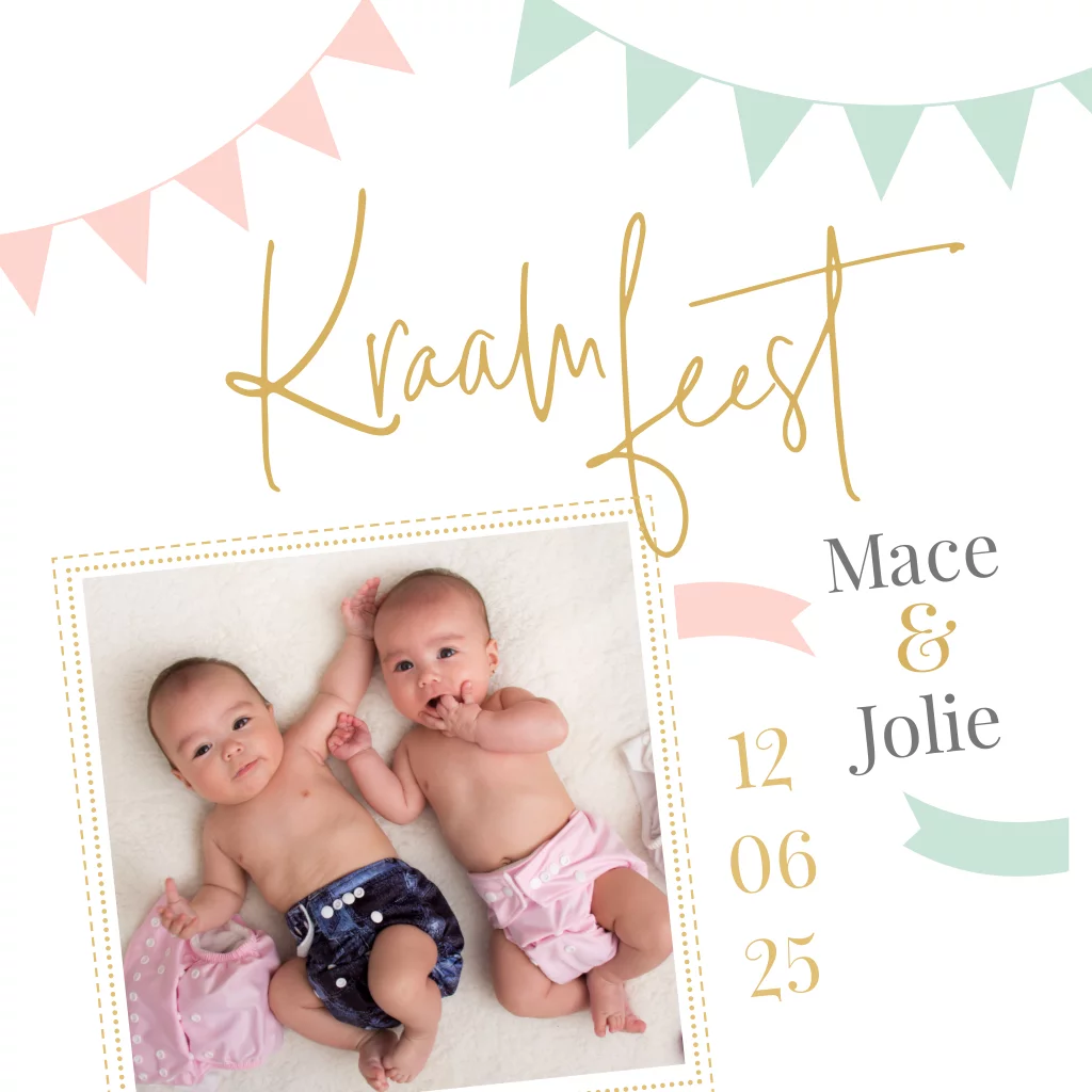 Uitnodiging Kraamfeest met vlaggetjes voor tweeling