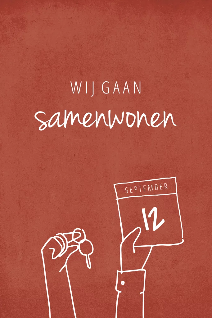 Gefeliciteerd! Jullie gaan samenwonen. Breng jullie familie en vrienden op de hoogte van dit leuke nieuws met dit verhuiskaartje met lijntekening