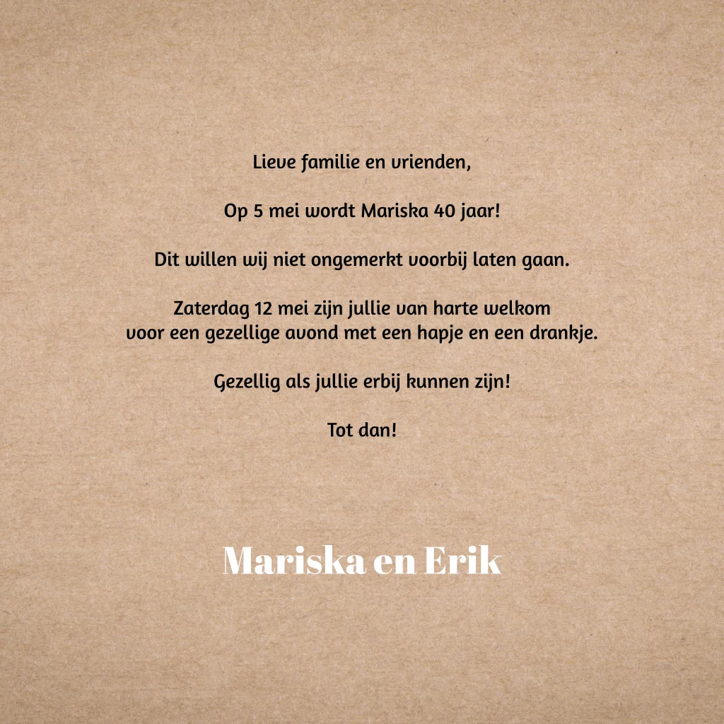 Uitnodiging voor 40ste verjaardag op kraft papier.